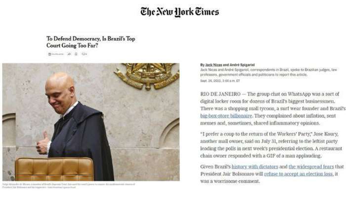 Artigo do New York Times questiona STF: ‘Está indo longe demais?’